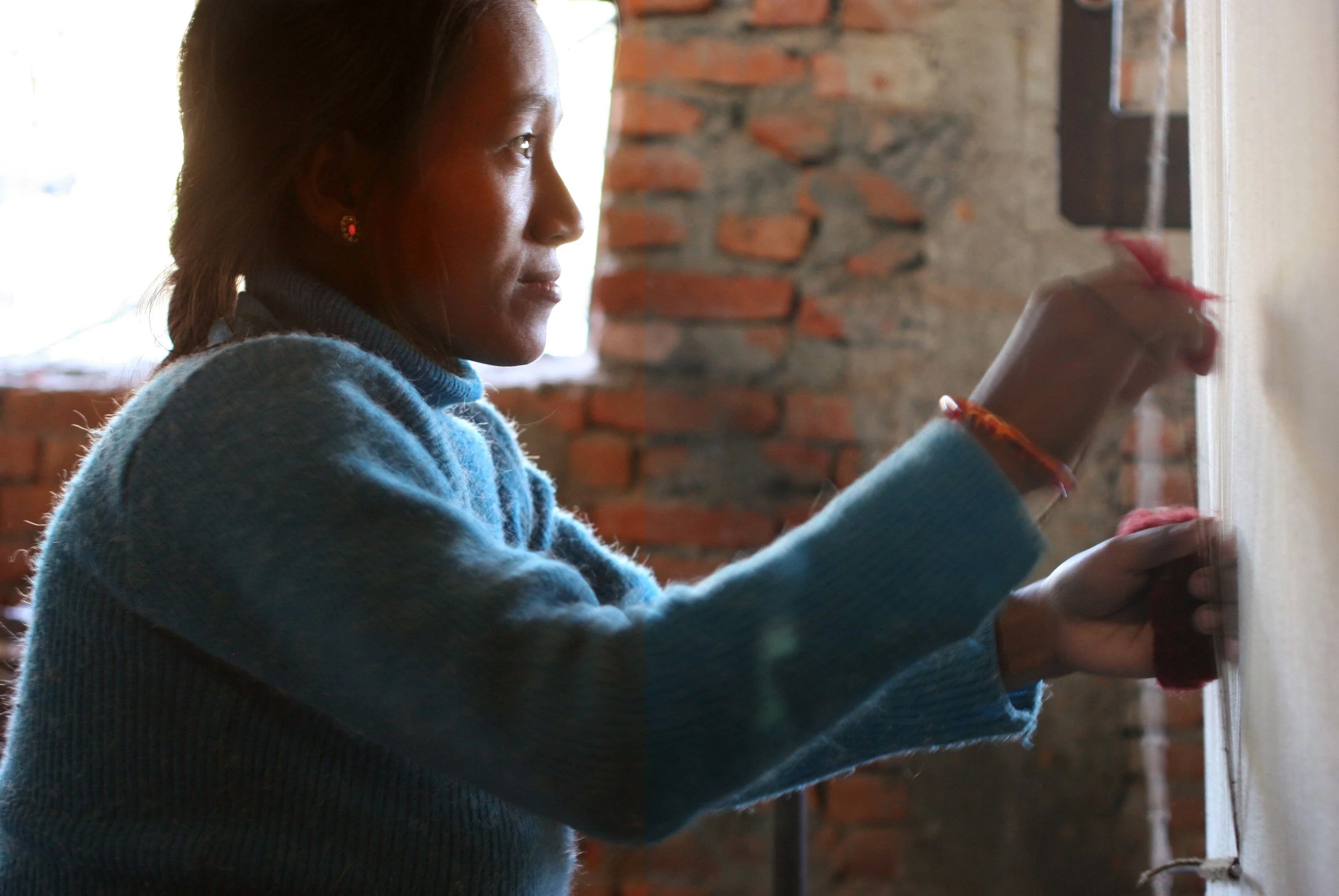 Layer upon layer of skill creates a quality that begins at the simplest level. The artisan begins, by hand, building excellence into the most basic element- the fleece. The best wool is, of course, the most workable. Hand carding involves discarding the slubs and burs, then aligning the long fibers taken from Himalayan highland sheep. The resultant long staple yarn is among the worlds strongest, yet is soft and pliable contributing to each rugs natural glowing charm.